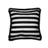 Cojín de rafia con líneas negras y blancas con flecos negros de 45 x 45 cm